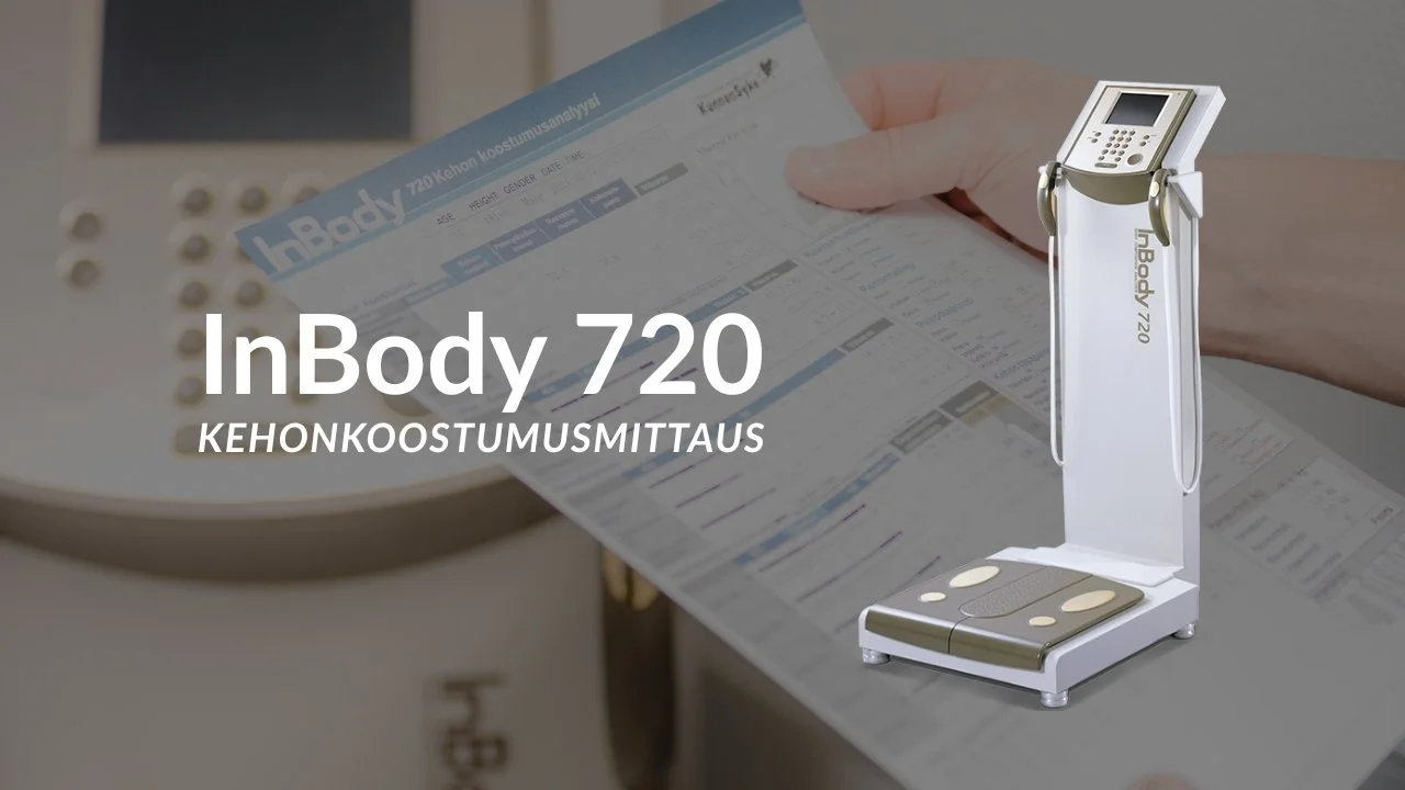 Kehonkoostumusmittaus toteutetaan InBody 720 -latteella. Mittauksessa määritetään painon lisäksi ainesosat, joista keho koostuu: nesteet, mineraalit, proteiinit ja rasva.